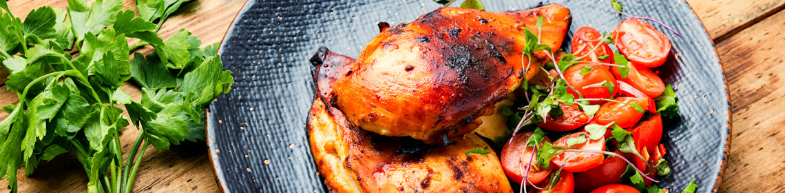 Charcoal Grilled Marinated Chicken Breast On A Bed Of Donner Meat